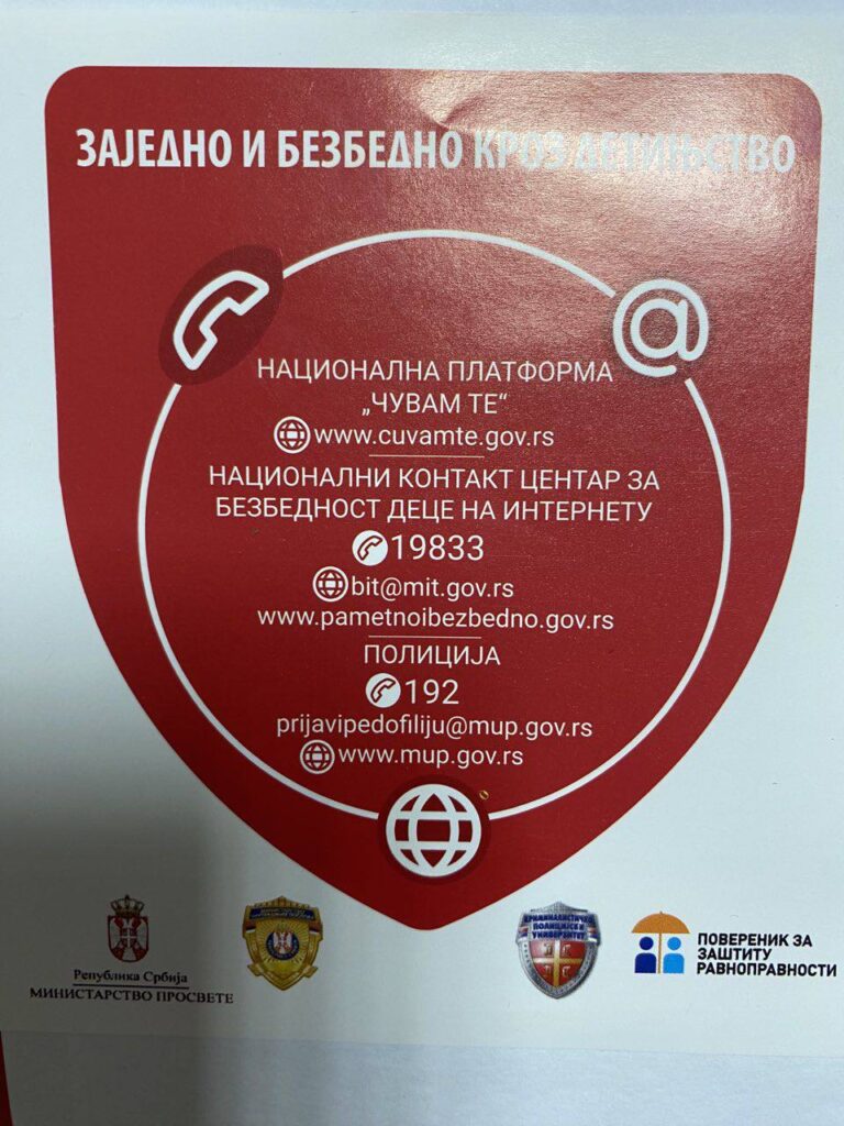 У оквиру пројекта „Заједно и безбедно кроз детињство“, које Министарство унутрашњих послова организује у сарадњи са Министарством просвете, у нашој школи је организована радионица за ученике 8. разреда.
